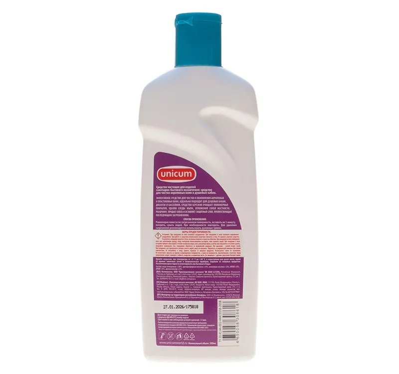Средство для чистки акриловых ванн и душевых кабин 380мл Unicum