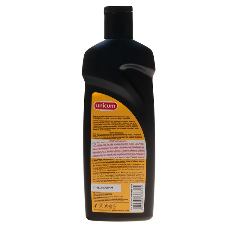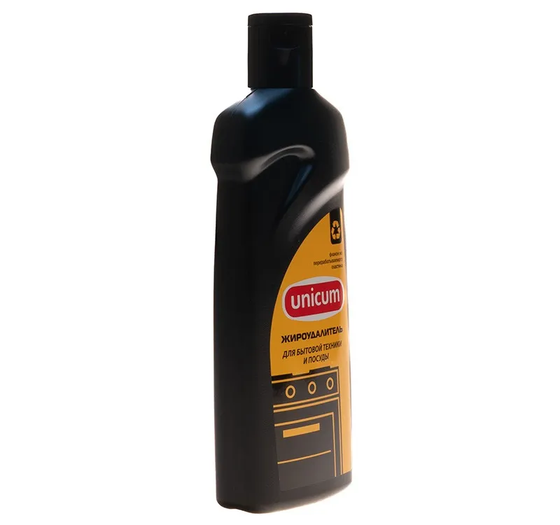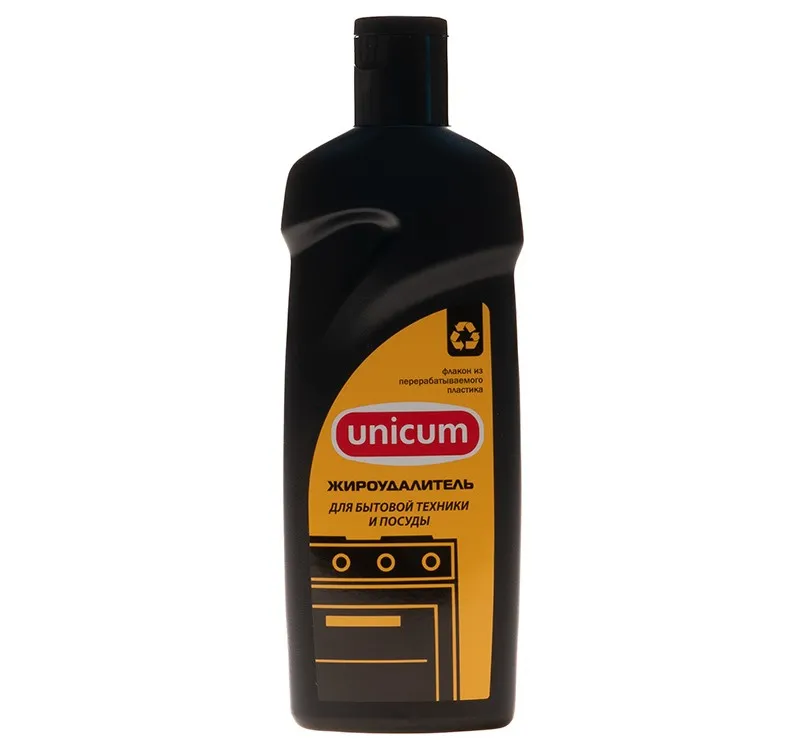 Жироудалитель Unicum "Gold" - особое средство для мгновенного удаления самых стойких застарелых и подгоревших масложировых загрязнений, нагара, копоти с поверхностей кухонных плит, духовых шкафов, грилей, кастрюль, сковородок, пароуловителей, кафельной плитки, в том числе и с охлаждённых поверхностей.Способ применения: нанести средство на загрязнённую поверхность, подождать 15-20 секунд, протереть влажной тряпкой и смыть водой. В случае особо стойких загрязнений - повторить действие, увеличив время обработки до 1 минуты.