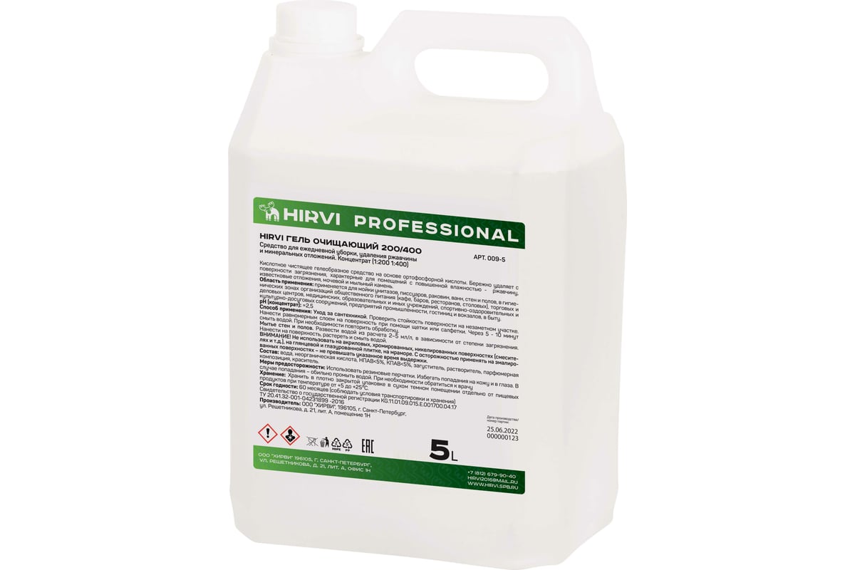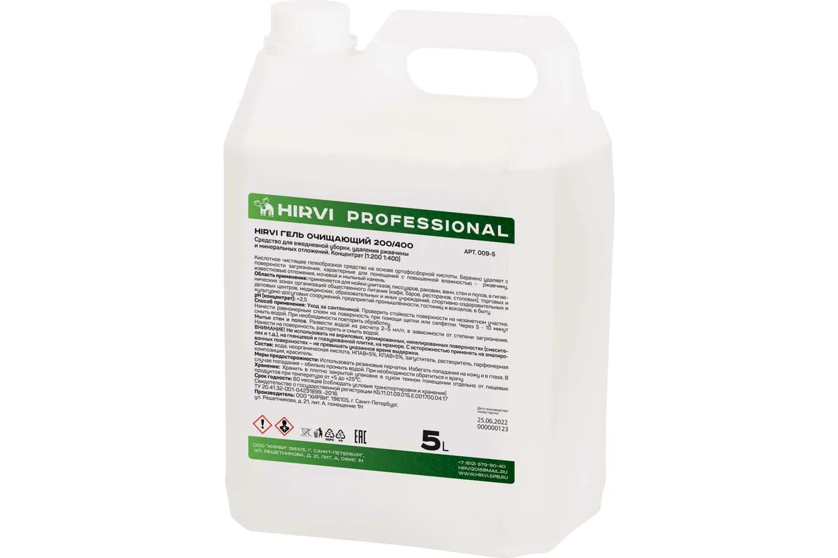 Хирви гель очищающий 200/400 — сильнокислотное чистящее гелеобразное средство на основе ортофосфорной кислоты.