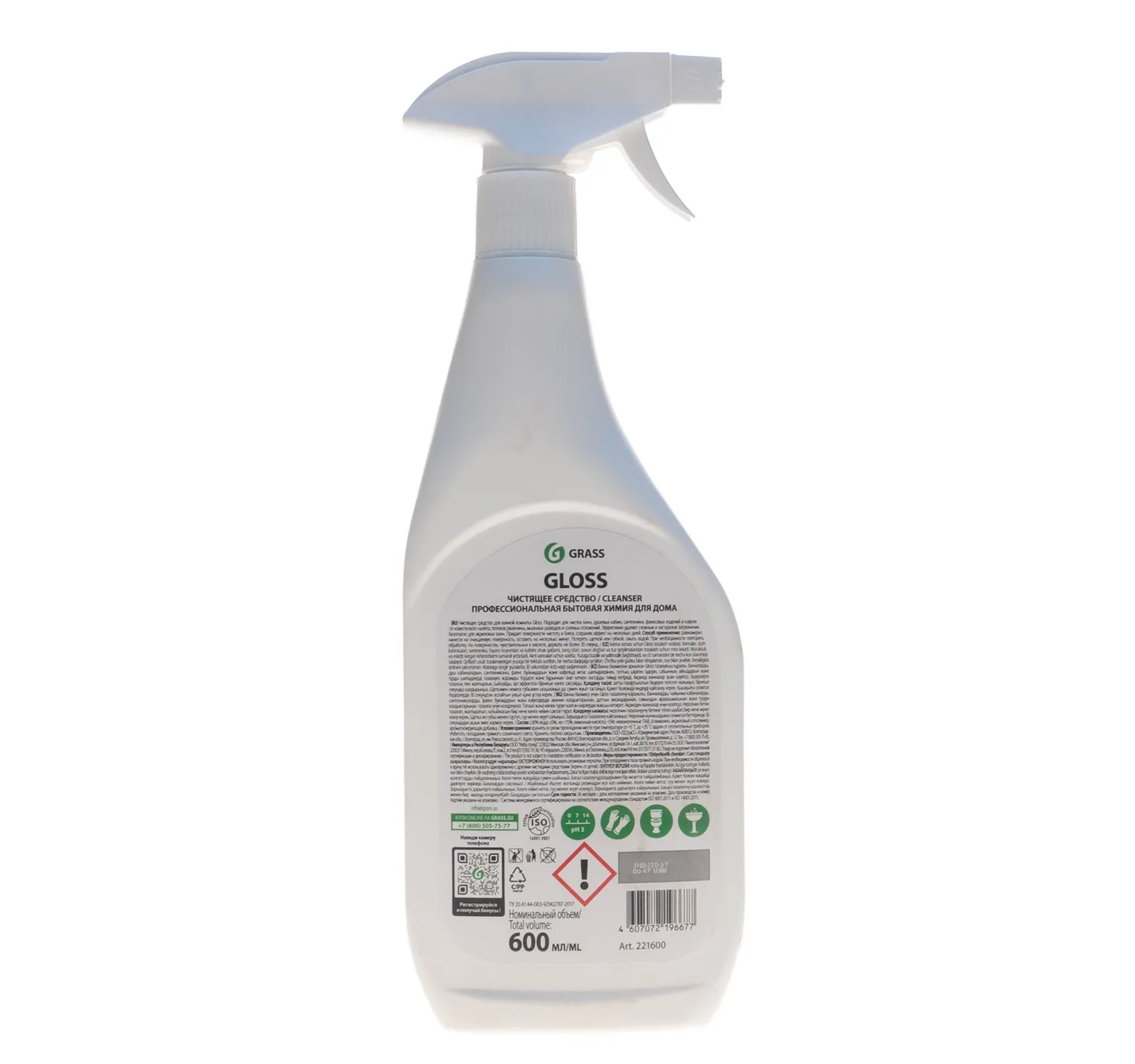 Средства для уборки линейки Gloss подходят для ванных комнат,чистки ванны, душевых кабин, сантехники, фаянсовых изделий и кафеля от известкового налета, потеков ржавчины, мыльных разводов и солевых отложений. Чистящее средство grass Gloss эффективно удаляет сложные и застарелые загрязнения. Безопасное средство для акриловых ванн, работает как отбеливатель. Придает поверхности чистоту и блеск, сохраняя эффект на несколько дней. На поверхностях, чувствительных к кислоте, держать не более 30 секунд.Состав:?30% вода; ?5%, но <15% лимонная кислота; <5%: неионогенные ПАВ, d-лимонен, акриловый сополимер, ароматизирующая добавка.
