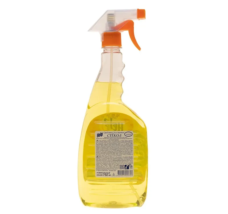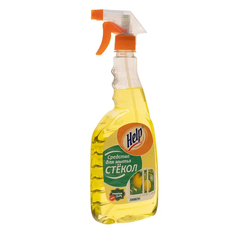 Средство для мытья стекол 750 мл Help Лимон: имеет большой курок; экономично распыляющий чистящее средство; удаляет грязь со стекол, не оставляет разводов; отдушка — лимон.