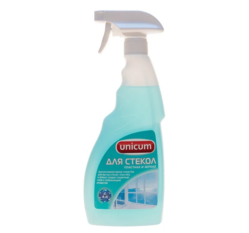 Средство для мытья стекол, пластика и зеркал 500мл Unicum курок