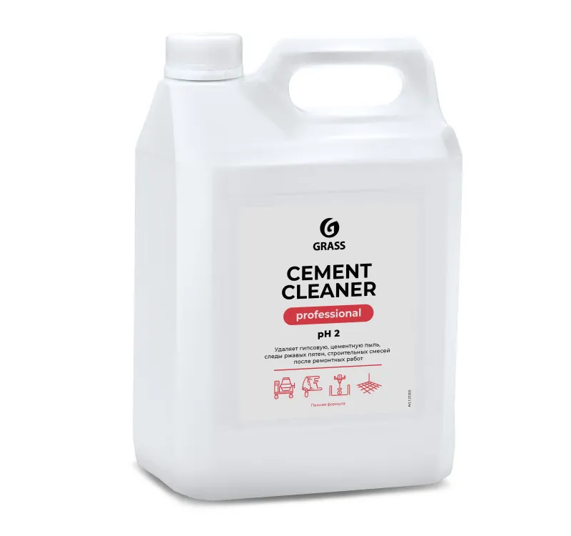 Моющее средство для удаления остатков цемента, бетона, ржавых пятен, водного камня, извести, солевых отложений, и других неорганических загрязнений, оставшихся после строительных или ремонтных работ.