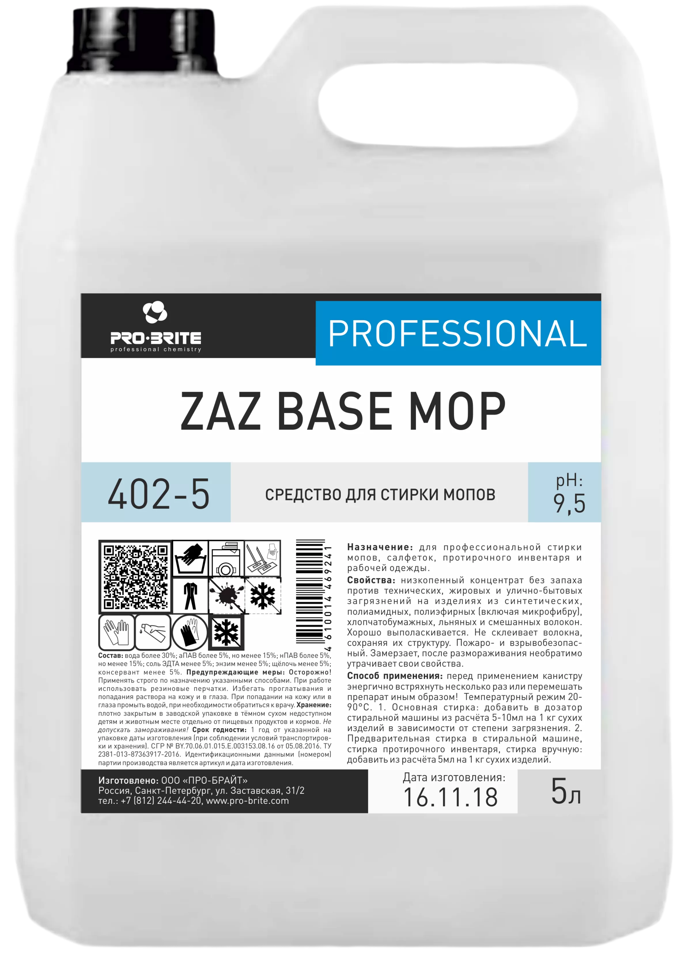 Свойства: жидкий низкопенный концентрат без запаха против технических, жировых и улично-бытовых загрязнений на изделиях из синтетических, полиамидных, полиэфирных (включая микрофибру), хлопчатобумажных, льняных и смешанных волокон. Хорошо выполаскивается. Не склеивает волокна, сохраняя их структуру. Пожаро- и взрывобезопасный. Замерзает, после размораживания (3-5 циклов!) свойства сохраняются.
