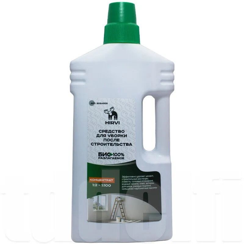 Удаляет цемент, строительные растворы, известь, солевые отложения, водный камень, клей, затирки для швов, ржавые подтеки, кальциево-карбонатные высолы.