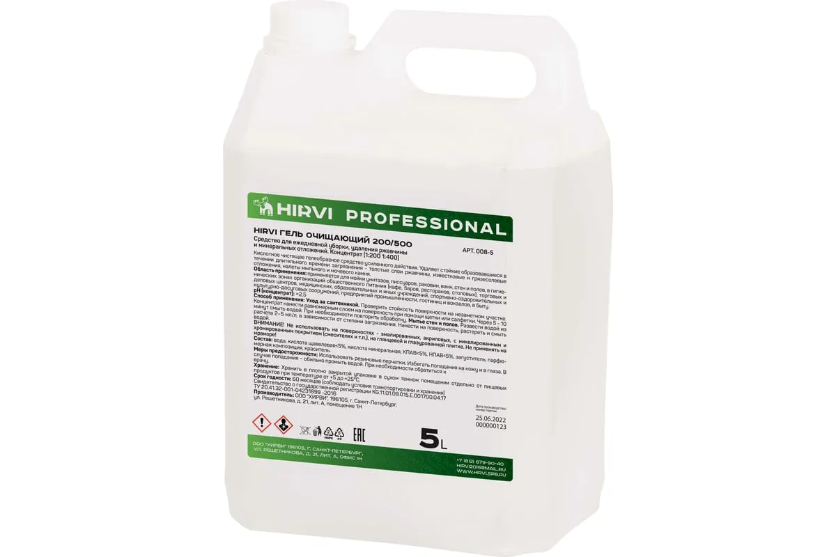 Хирви гель очищающий 200/500 — усиленное средство для ухода за сантехникой.