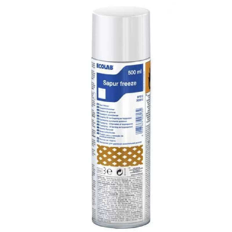 Sapur Freeze / Carpet Freeze - это средство для быстрого, не повреждающего ткань и не оставляющего следов удаления жевательной резинки методом заморозки из текстильных покрытий. Также подходит для удаления остатков жевательной резинки и воска с твёрдых напольных покрытий. Удобный в использовании аэрозольный баллончик объемом 500 мл позволяет точно и точечно наносить средство