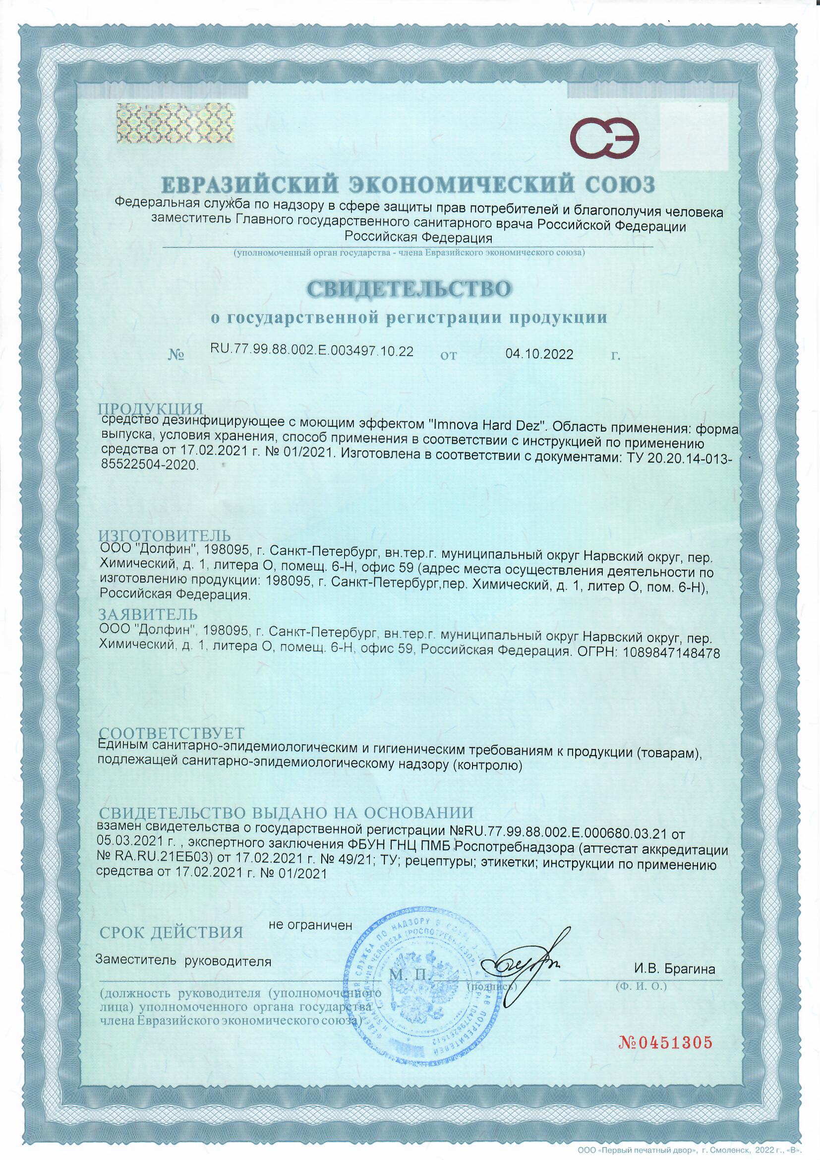 - Ручной метод Средство используется в виде водного раствора в концентрации 8-20 мл средства на 1 л воды в соответствии с инструкцией №01/2021 по применению дезинфицирующего средства с моющим действием Imnova Hard Dez. Предупреждение: При первом применении необходимо протестировать обрабатываемую поверхность на устойчивость к средству.
