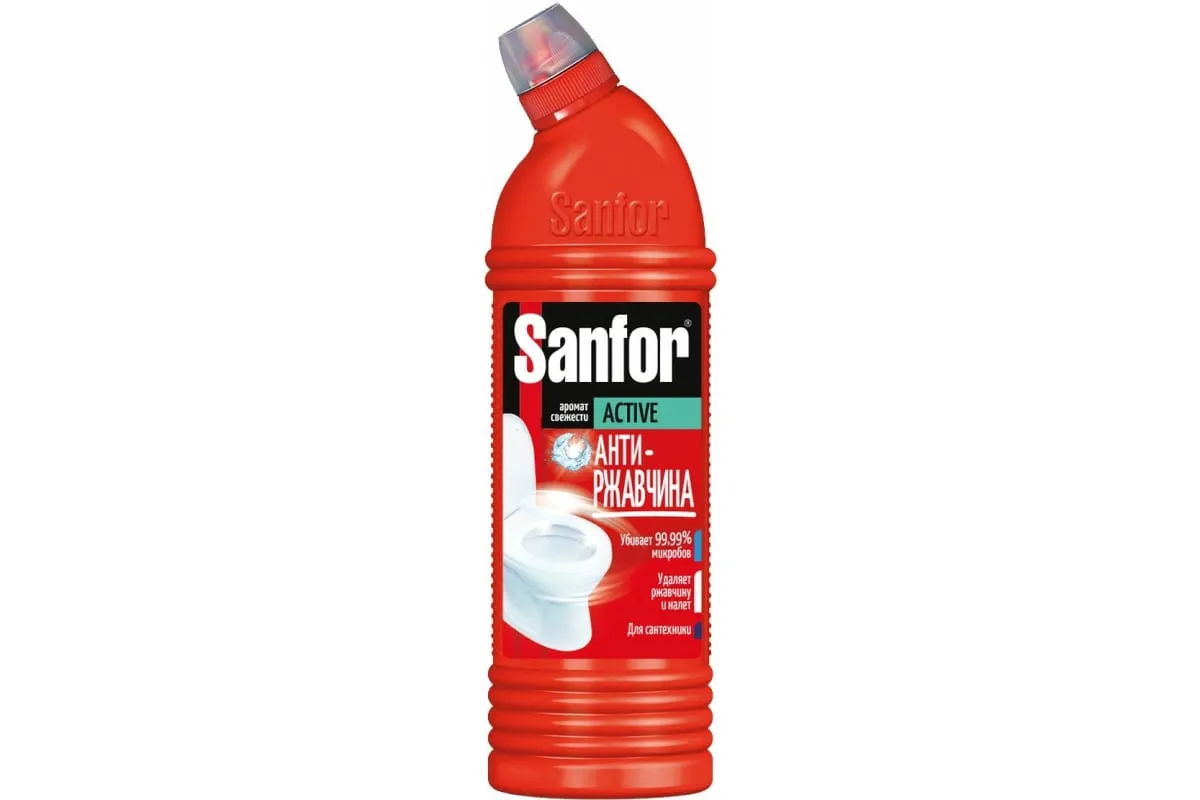 Средство быстро удаляет ржавые подтеки, растворяет водный и мочевой камень, препятствует их образованию в унитазах, в душе, на кранах, фаянсовых раковинах, плитке.
