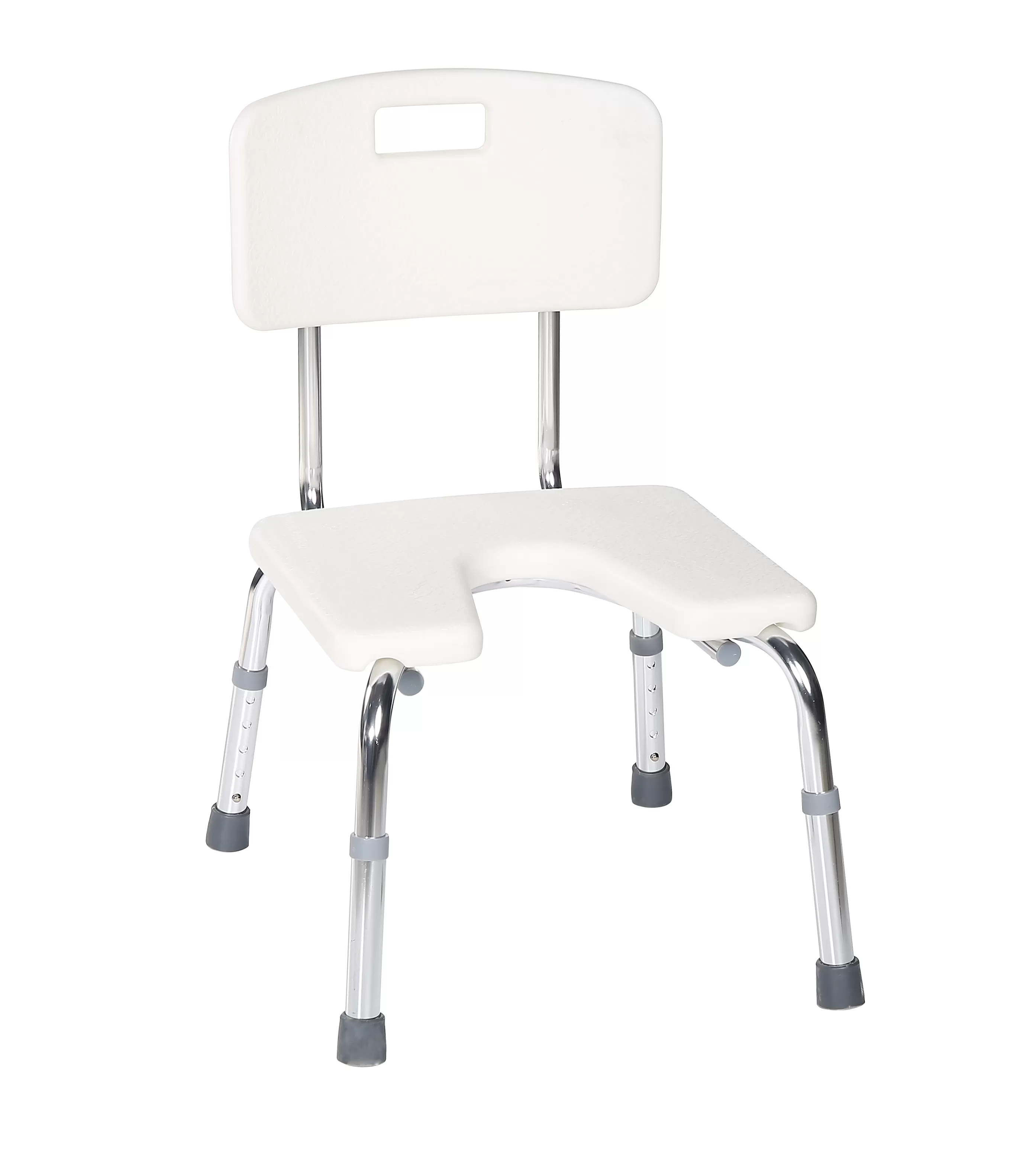 Фото товара: Стул для ванной со спинкой, макс нагрузка 110кг, белый, с гигиенической выемкой