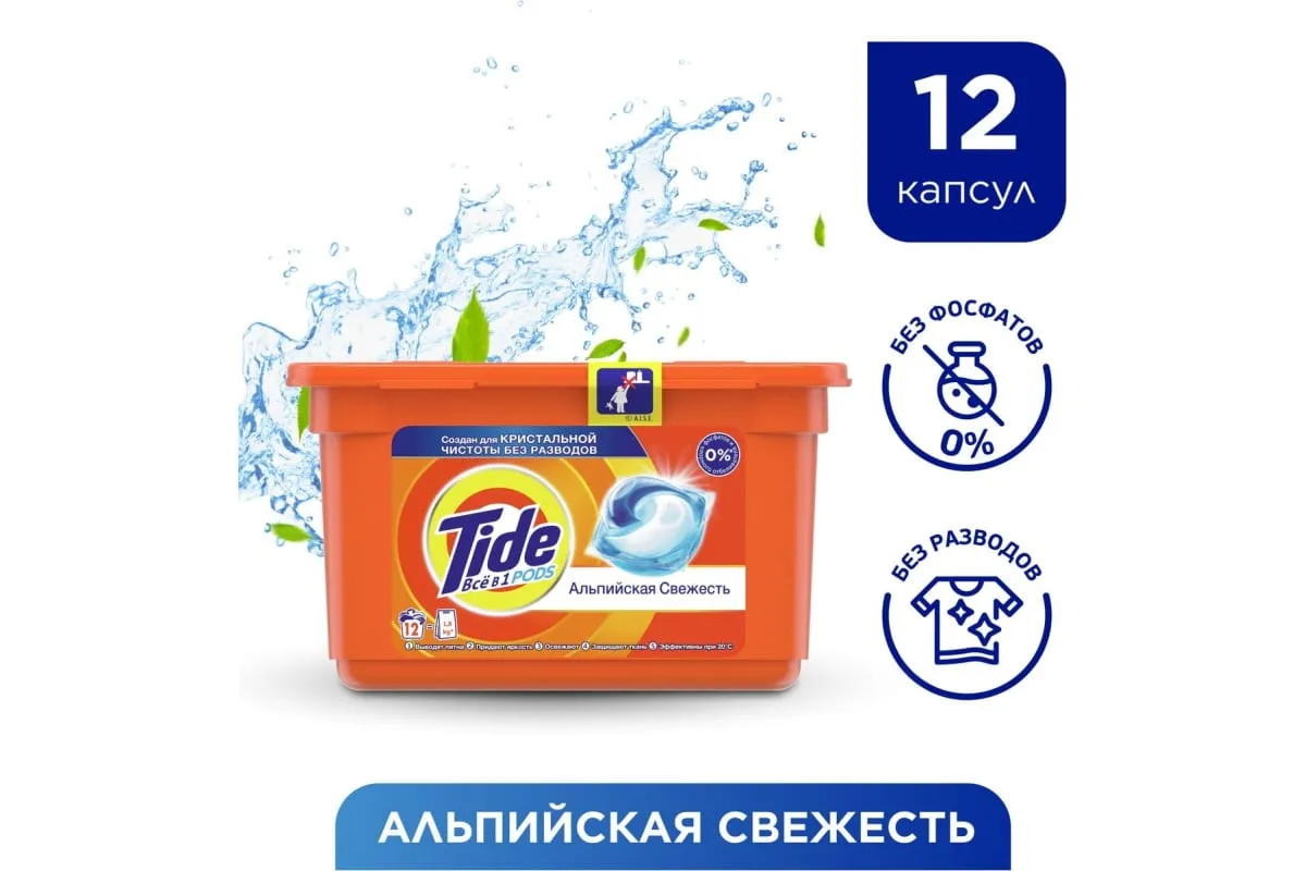 Tide ВСЁ в 1 Альпийская Свежесть — это потрясающая эффективность всего в одной капсуле.