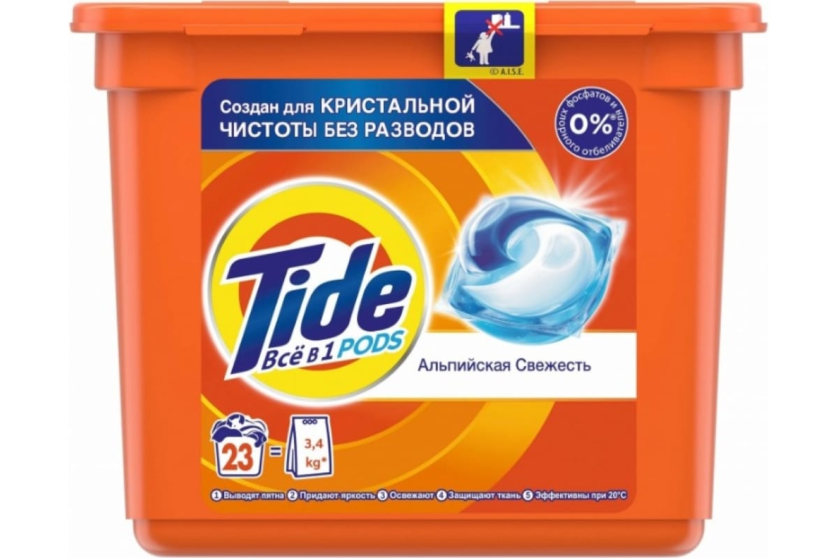 Tide ВСЁ в 1 Альпийская Cвежесть — это потрясающая эффективность всего в одной капсуле.