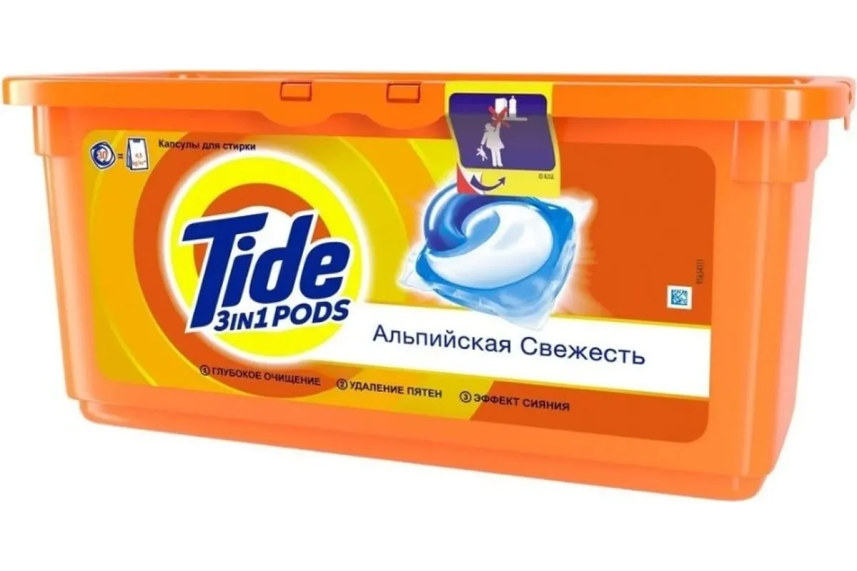 Tide ВСЁ в 1 Альпийская Cвежесть — это потрясающая эффективность всего в одной капсуле.