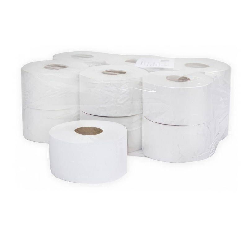 Однослойная туалетная бумага Tomos естественно белая. Длина намотки — 200 м.