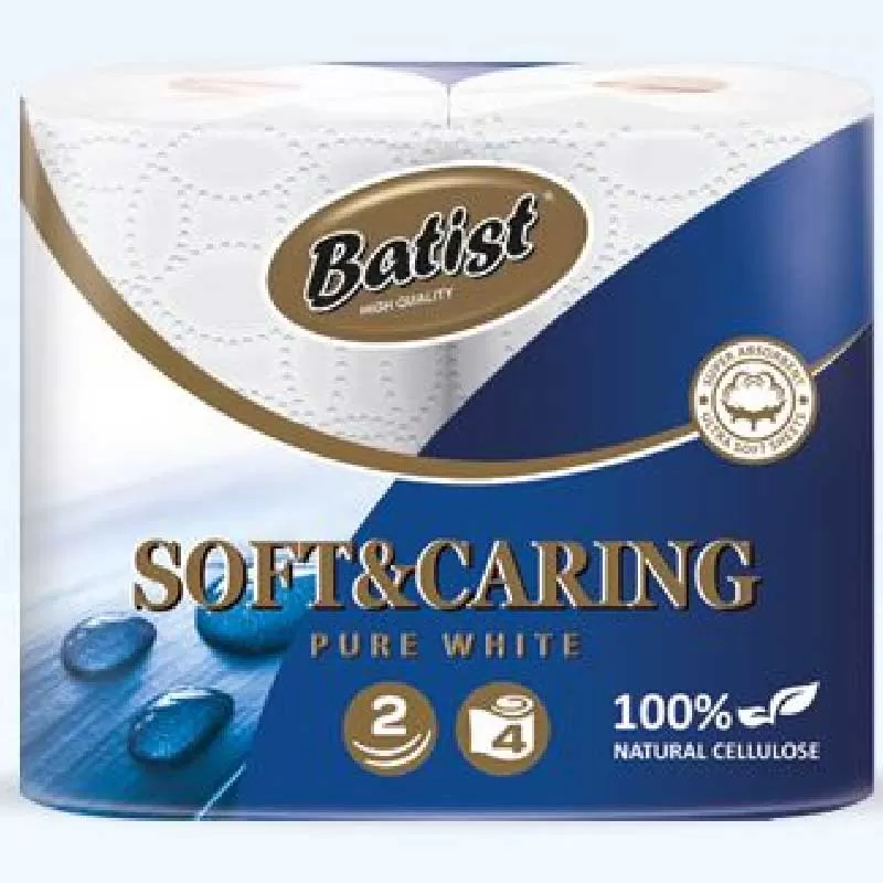 Туалетная бумага в рулонах Batist 2-сл, 25м, 210л, 4рул, цвет белый