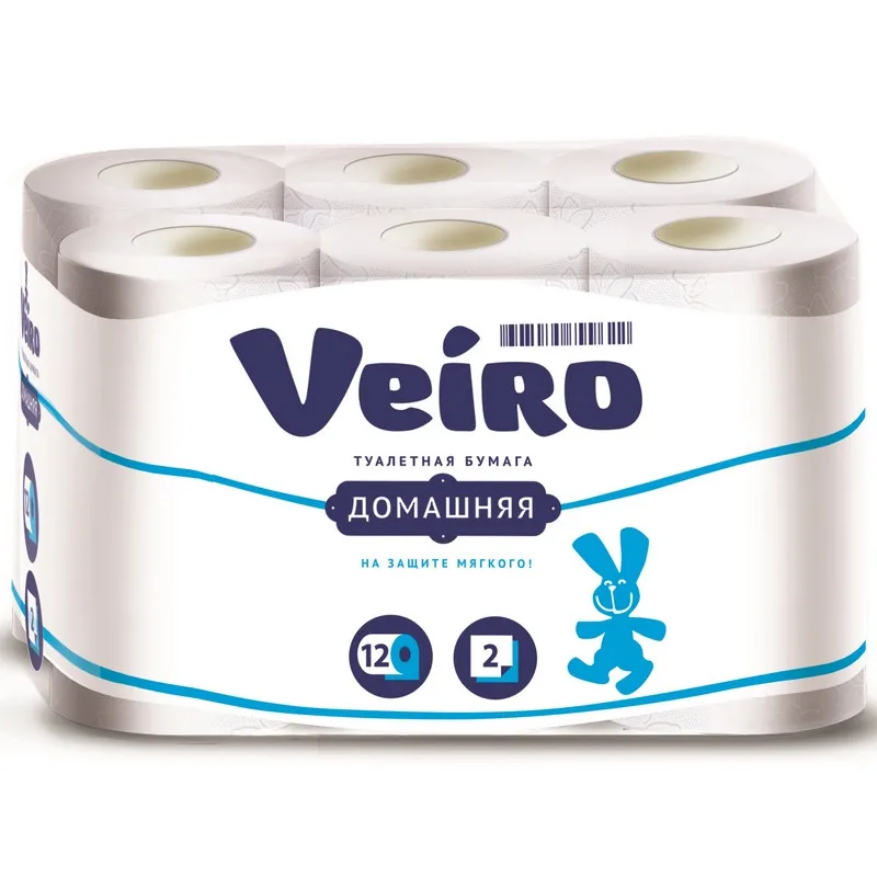 Назначение: Мягкая двухслойная белая туалетная бумага Veiro Домашняя с тиснением и перфорацией.