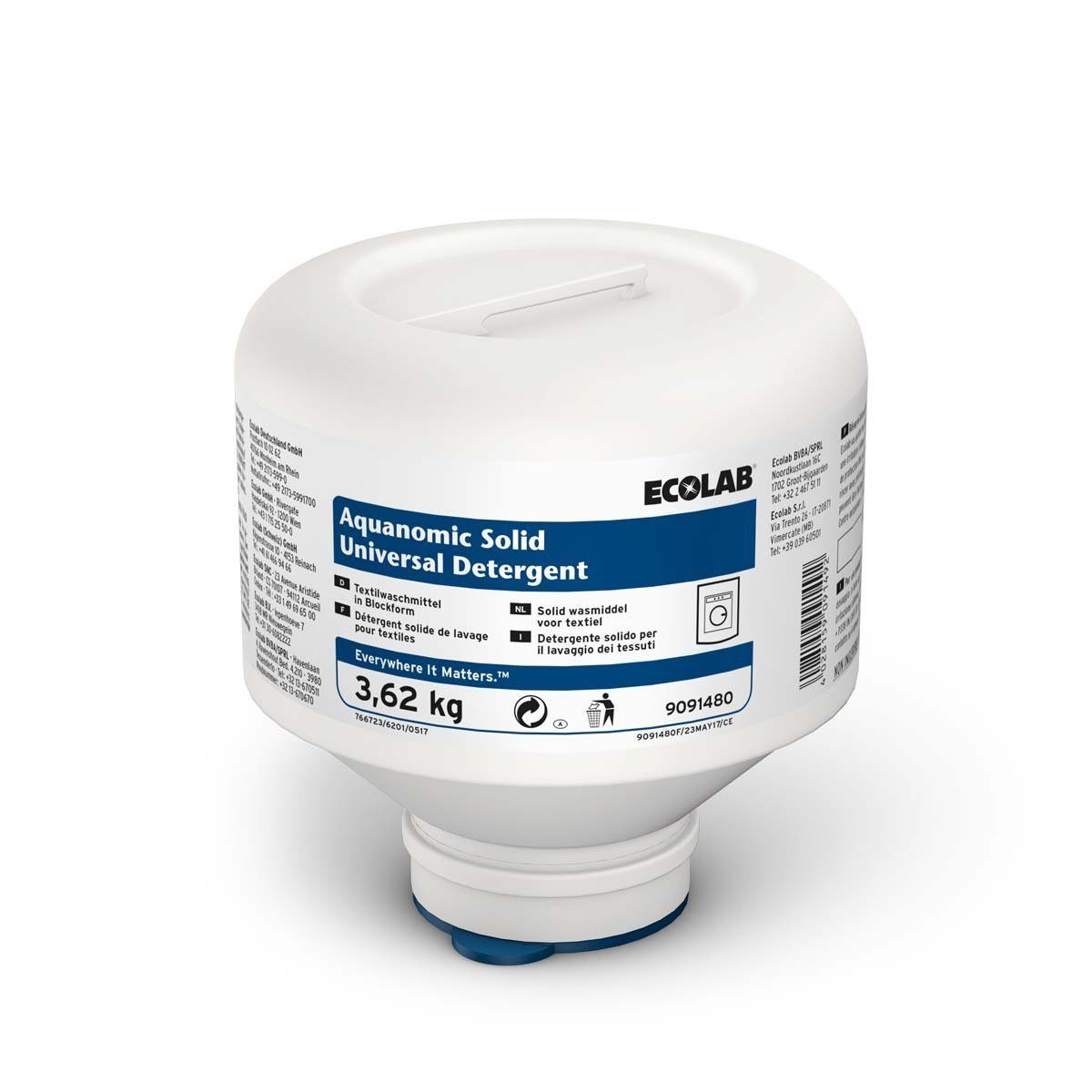 Aquanomic Solid Universal Detergent – твердое моющее средство для стирки белья, производства Эколаб. Рекомендуем применять в профессиональных стиральных машинах с использованием специального настраиваемого дозирующего оборудования Акваномик (Aquanomic).