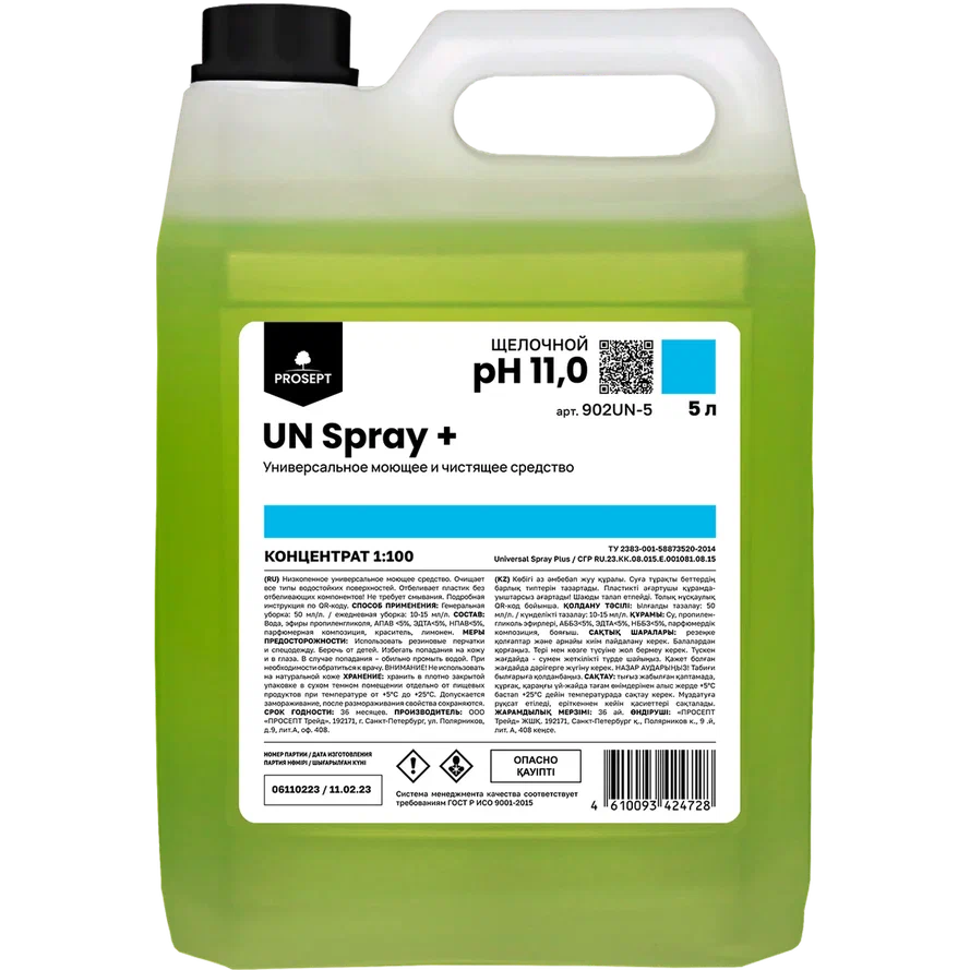 Концентрат UN Spray+ обладает слабощелочной формулой и низким пенообразованием. Оно эффективно удаляет стойкие органические загрязнения: жирные пятна, копоть, масла, косметику, чернила, следы от скотча и клея. UN Spray+ способен отбеливать пластик не повреждая поверхность.