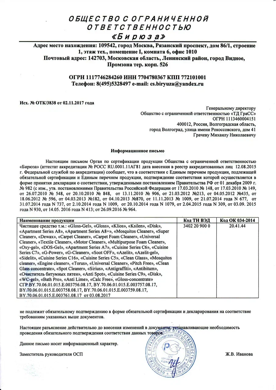 - Состав ≥30% вода; <5%: гипохлорит натрия, анионные ПАВ, неионогенные ПАВ, гидроксид натрия, ароматизирующая добавка.