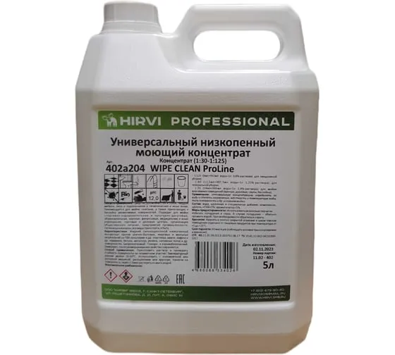 WIPE CLEAN ProLine — жидкий сильнощелочной низкопенный концентрат против улично-бытовых, жировых и мыльных загрязнений на ПВХ-линолеуме и др. пластиках, камне, кафеле и др. керамике, бетоне, металлах, резине, наливных полах и др. поверхностях.