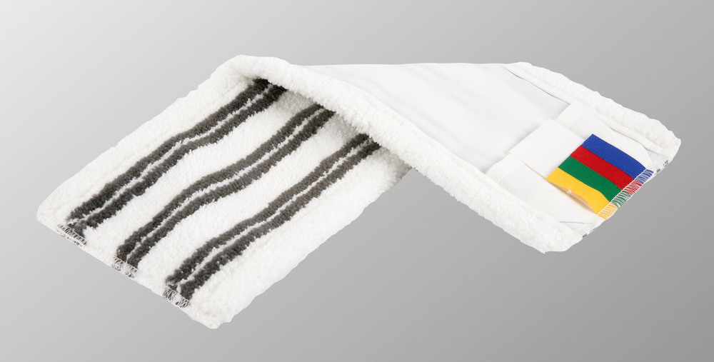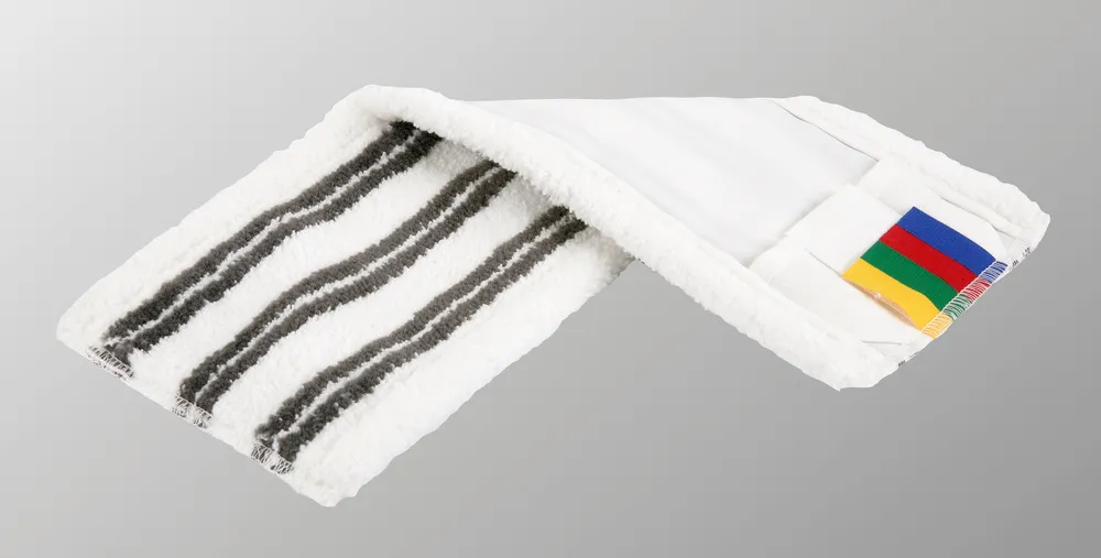 - Состав рабочая поверхность мопа: белый ворс — 100% полиэстеровое микроволокно, черный ворс — 100% полиамид, основа, ремни, окантовка, хлястики — 100% полиэстер.