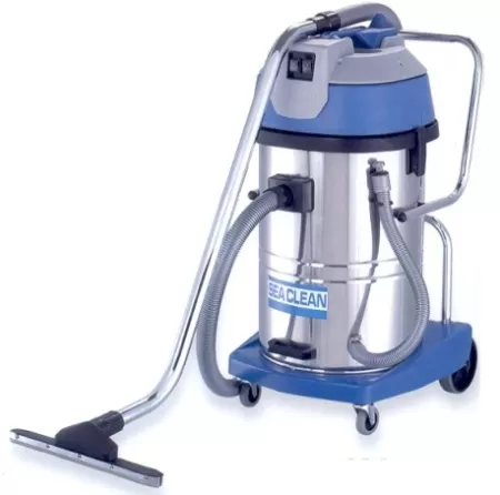 Водогрязепылесос 60 л стальной бак 2 двигателя на тележке и со шлангом слива