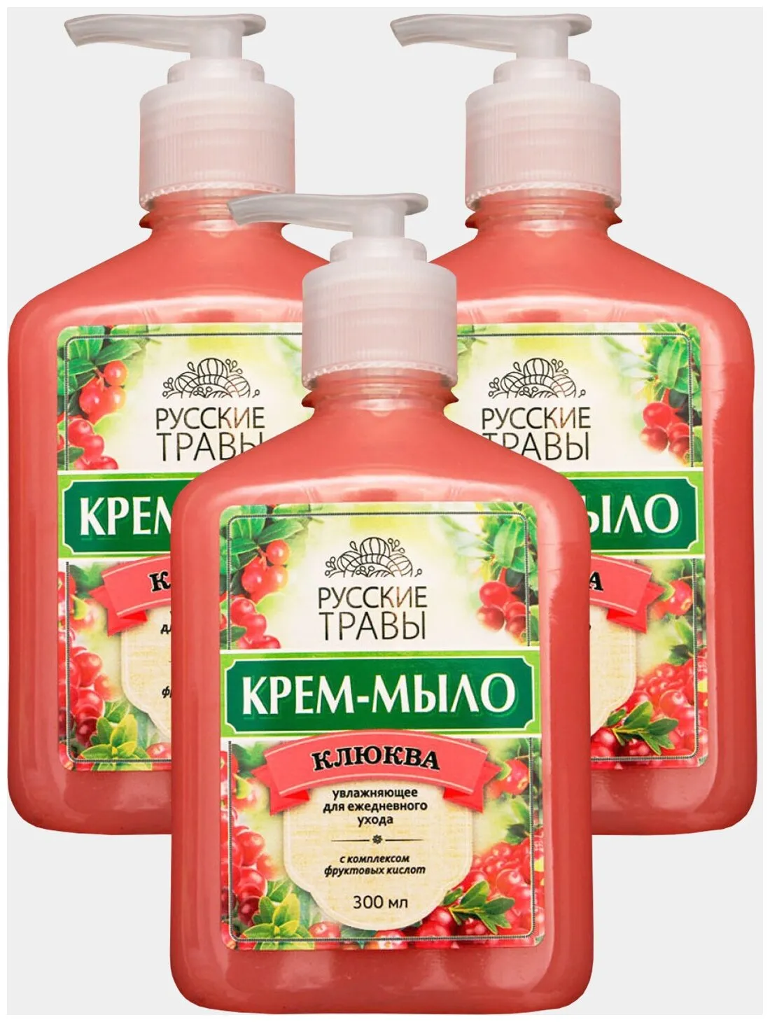 Жидкое крем-мыло Русские травы Клюква, дозатор, 300 мл