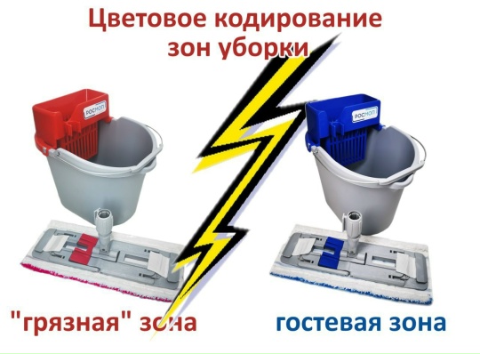 Ещё один плюс – разделение инвентаря по зонам (общие помещения и санузлы). Цветовое кодирование помогает не путать насадки и снижает риск перекрёстного загрязнения.