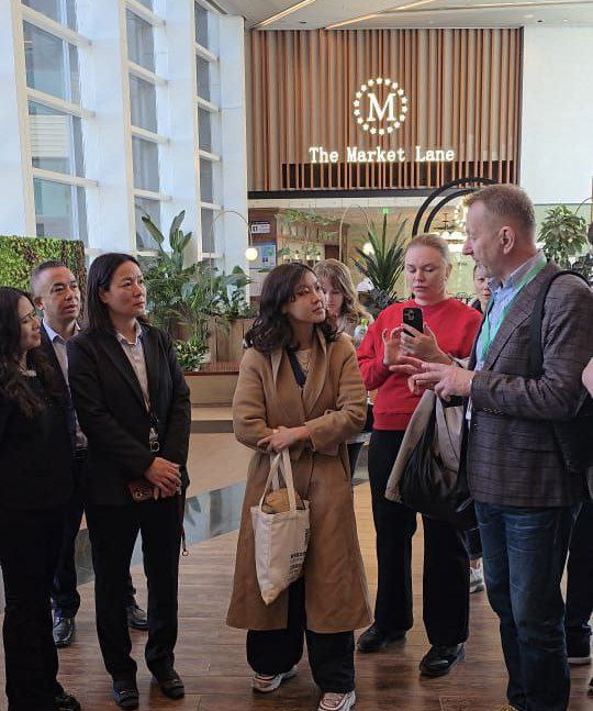Девушки повели быстрым шагом все нашу толпу по торговому центру. Делегация запросила комментариев и диалог, и дамы остановились на свободном пятаке. Было десять утра, людей в ТЦ не было совсем. В торговом центре царила чистота. Дамам через переводчицу начали задавать вопросы.